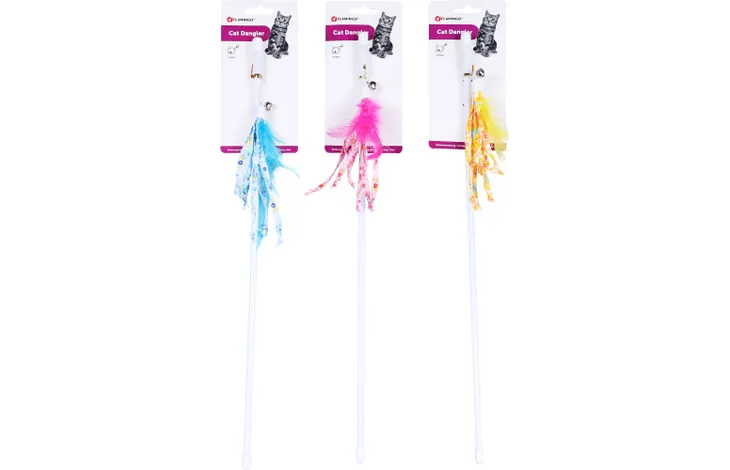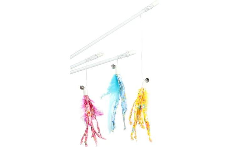 • With tinkling cat bell, ribbons and feathers on elastic band for extra fun