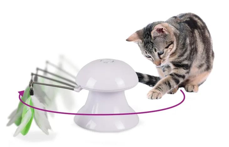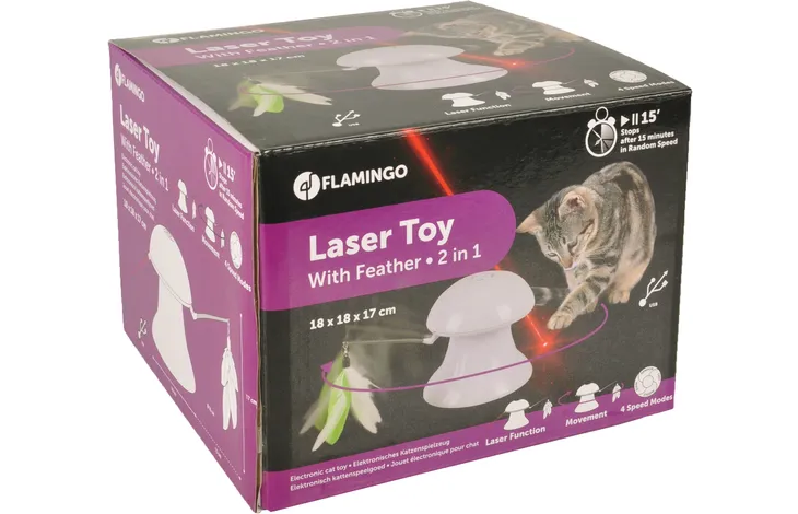 Let your cat hunt and play with this electronic toy! With a feather that makes unpredictable movements and a 360-degree rotating laser, your cat will never get bored. Choose from 4 speeds and stimulate your cat’s hunting instinct!