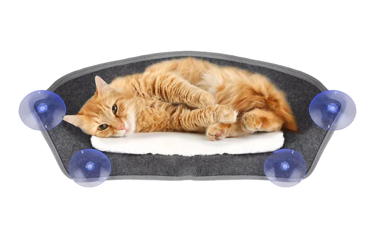 Does your cat love to sit by the window? Then this grey cat bed with suction cups is perfect for you both! The felt material gives it a stylish look and the removable cushion makes it extra comfortable. Let your cat enjoy the view and spy on the neighbourhood together!