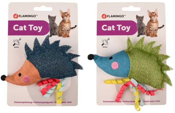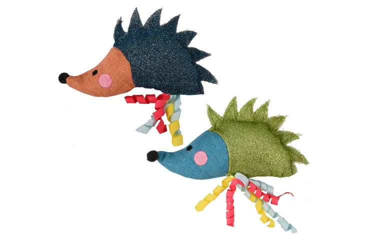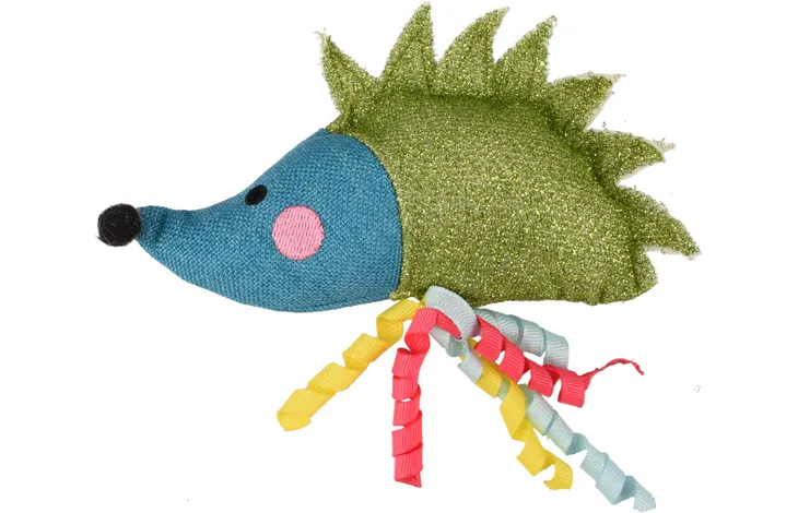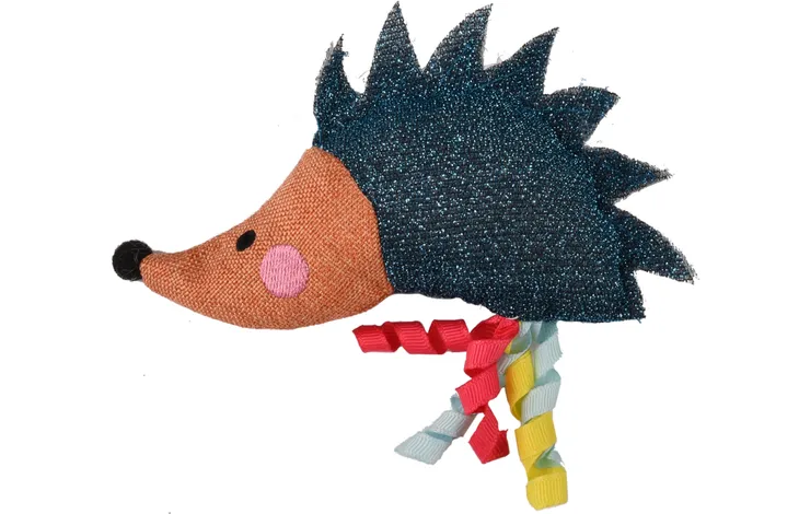 This Blix Hedgehog toy is perfect for your cat! Made from soft fabric and finished with glitter for extra bling. The rattling sound and ribbons provide hours of playtime fun. Available in multiple colors.