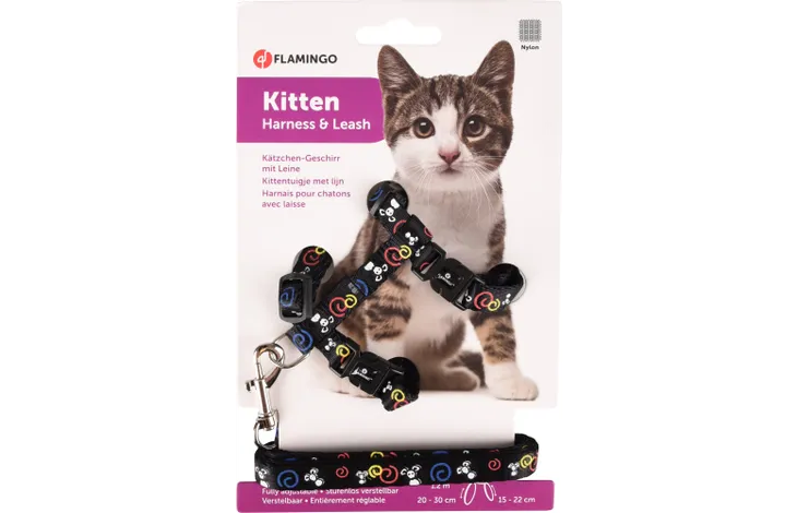 HomeShopCatCat Collars & HarnessesFLAMINGO HARNESS WITH LEASH KITTEN TOPO BLACK