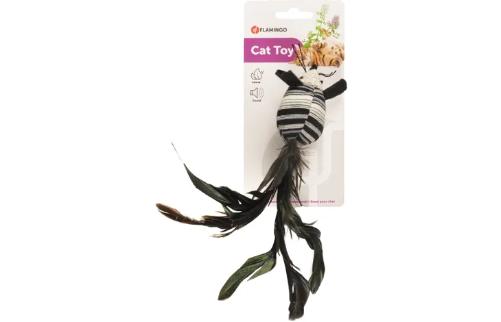 HomeShopCatCat ToysFLAMINGO CAT TOY PIRIN MOUSE WITH FEATHERS BLACK/WHITE