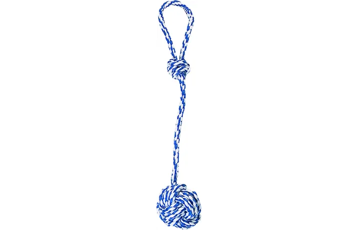 This dog toy combines the classics of a ball and cotton rope for ultimate playtime fun! Perfect for fetching, chewing, and tug-of-war. The shape makes it easy to throw and track. Enjoy endless outdoor fun with this colourful toy!