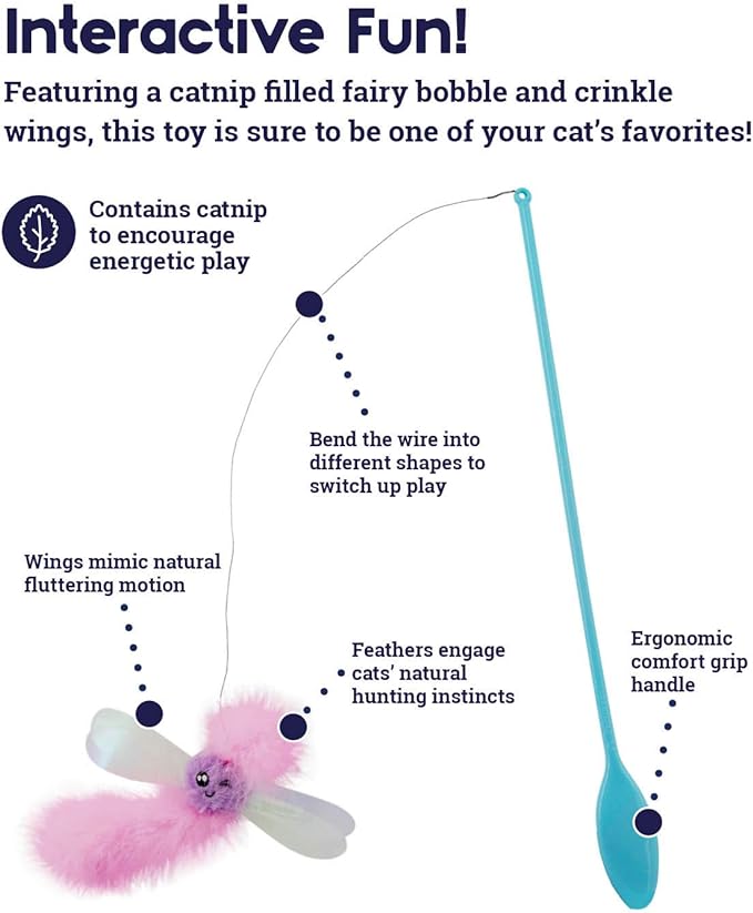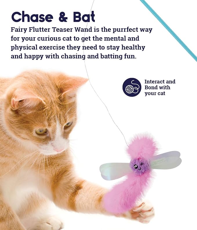 - CHASE & BAT: Fairy Flutter Teaser Wand is the purrfect way for your curious cat to get the mental and physical exercise they need to stay healthy and happy with chasing and batting fun.