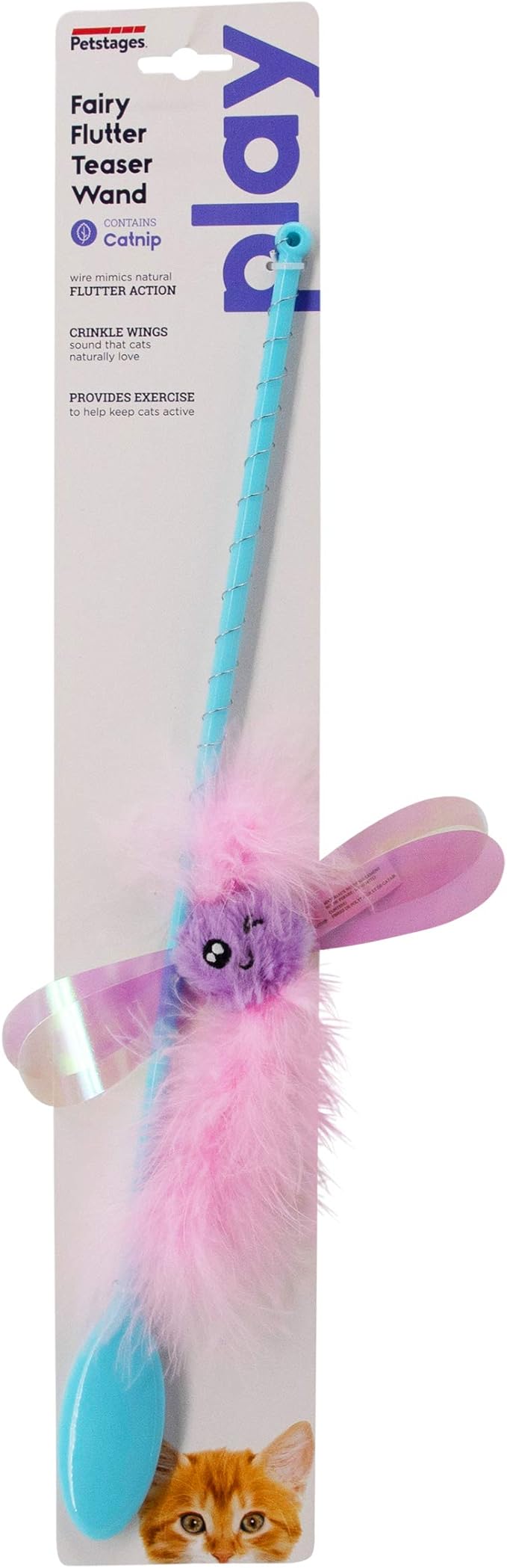 - CRINKLE SOUND: Cats love crinkle! That’s why the Fairy Flutter Teaser Wand features wings that crinkle when swatted by kitty, helping to keep your cat playing and engaged.