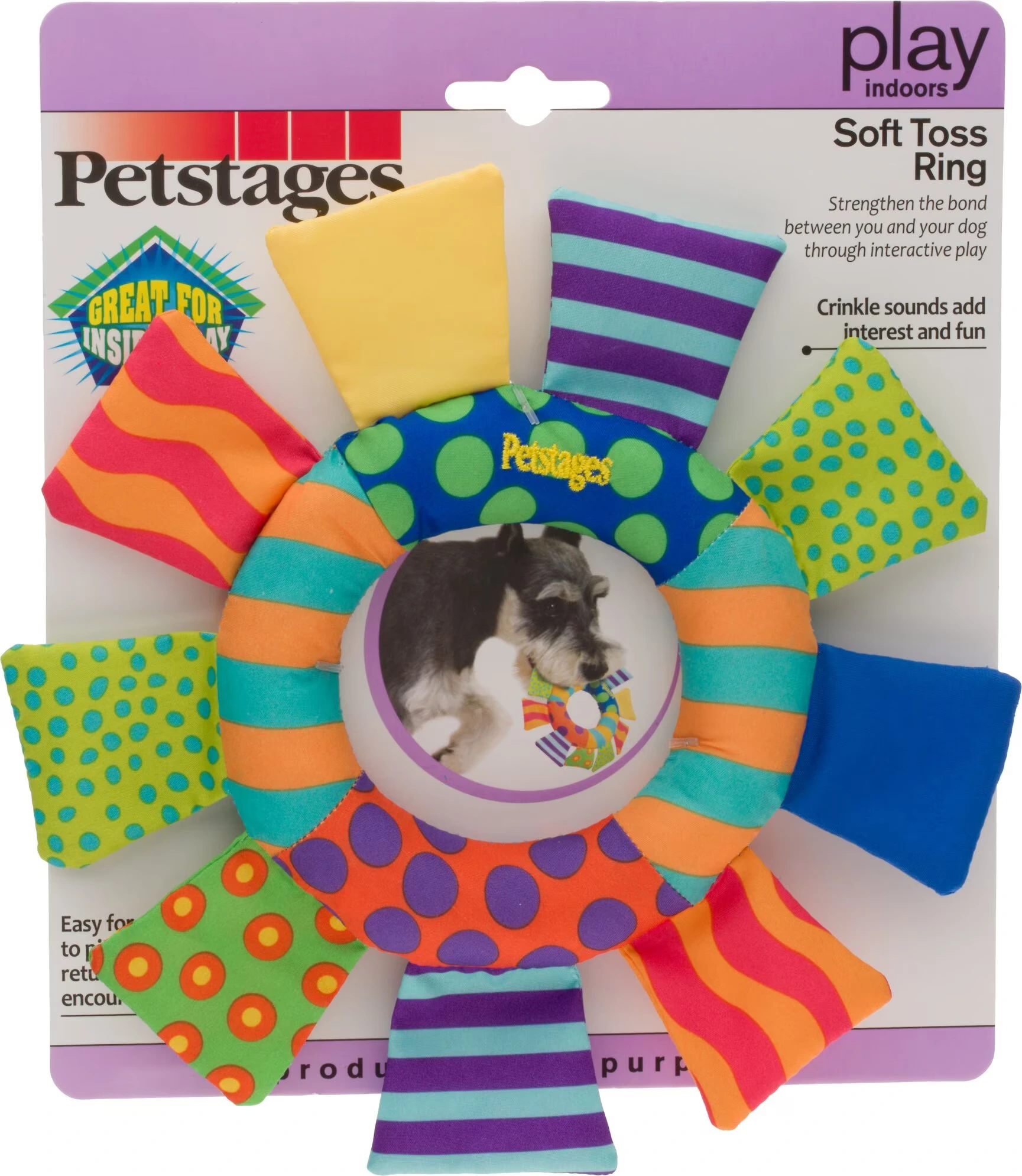 Strengthen the bond between you and your dog through interactive play with the Soft Toss Ring by Petstages. This bright toy is fun and full of engaging crinkle sounds. Perfect for a game of tug-of-war or fetch!