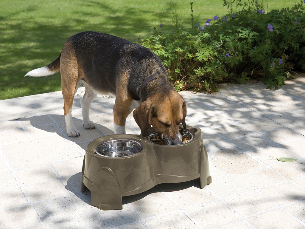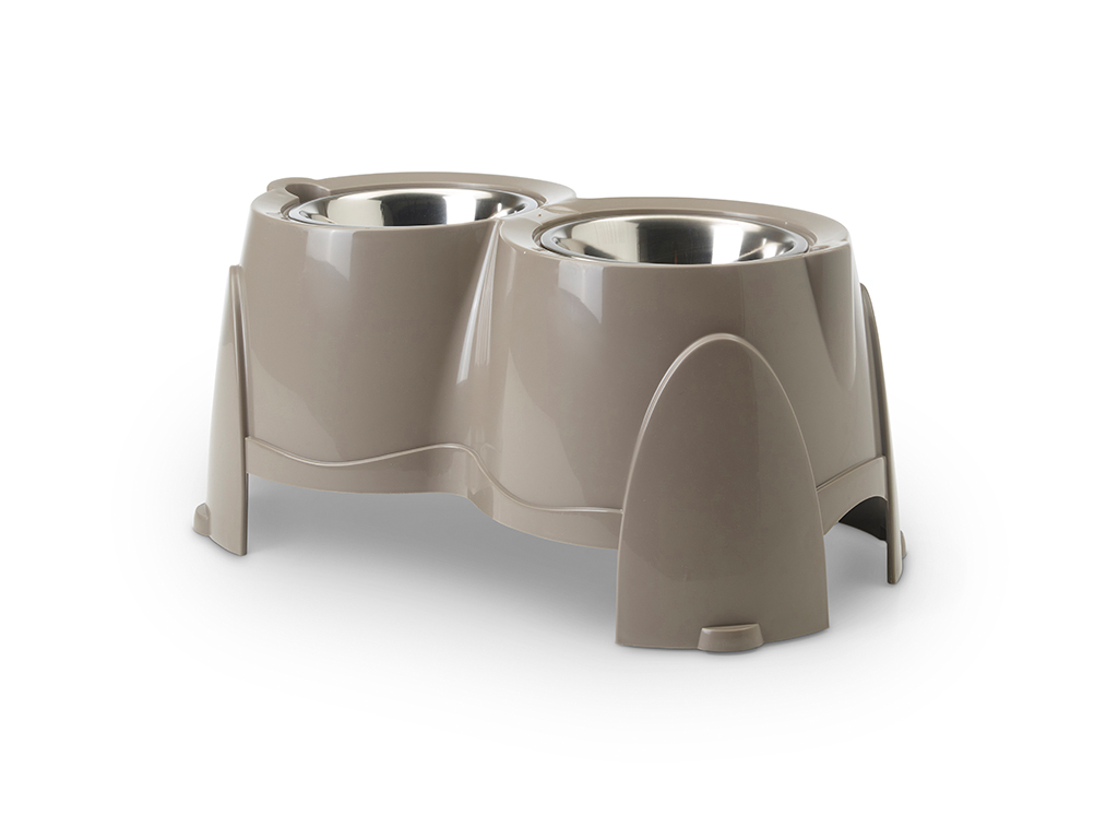 The Ergo Feeder is a raised dog feeder and drinker which includes 2 removable stainless-steel bowls. The Ergo Feeder is recommended for mature, large and arthritic dogs who struggle with ground-level feeding. Thanks to the Ergo Feeder, the dog will maintain a correct posture during feeding and drinking with less strain on its back and neck. Moreover, the dog will take in less air and be standing in a correct eating position. This leads to improved digestion, thereby reducing the risk of bloating. The Ergo Feeder is easy to clean. The bowls are dishwasher safe and the plastic stand can be wiped clean with a cloth. The Ergo Feeder is available in 2 different heights: 18 and